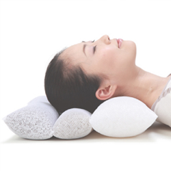 「眠れる枕」は、クオーツ、トルマリン、ゲルマニウムを3連の山にし、枕カバーにナノ・プラチナを特殊加工しております。